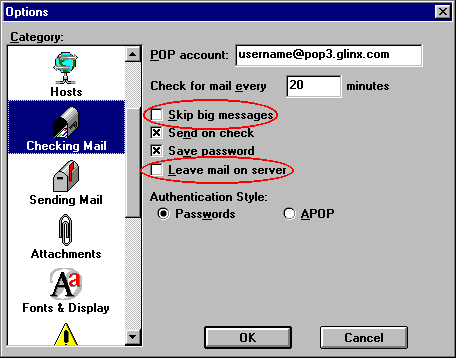 ![]() "Skip big messages" and "Leave messages on server" should both be unchecked. Both of these options will leave mail on our server which can easily build up over time. Okay, how do I fix it?
